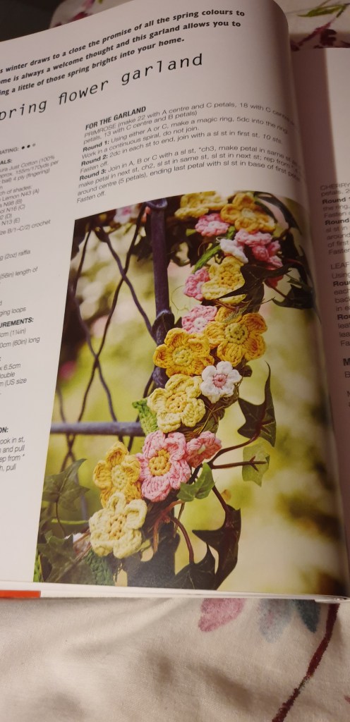 I picked up a great new crochet book at the weekend from The Works. It’s called Crocheted Wreaths and Garlands, by Kate Eastwood.