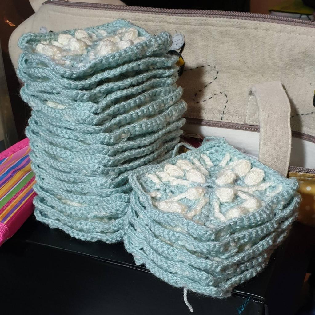 21 squares … some with ends still to sew in