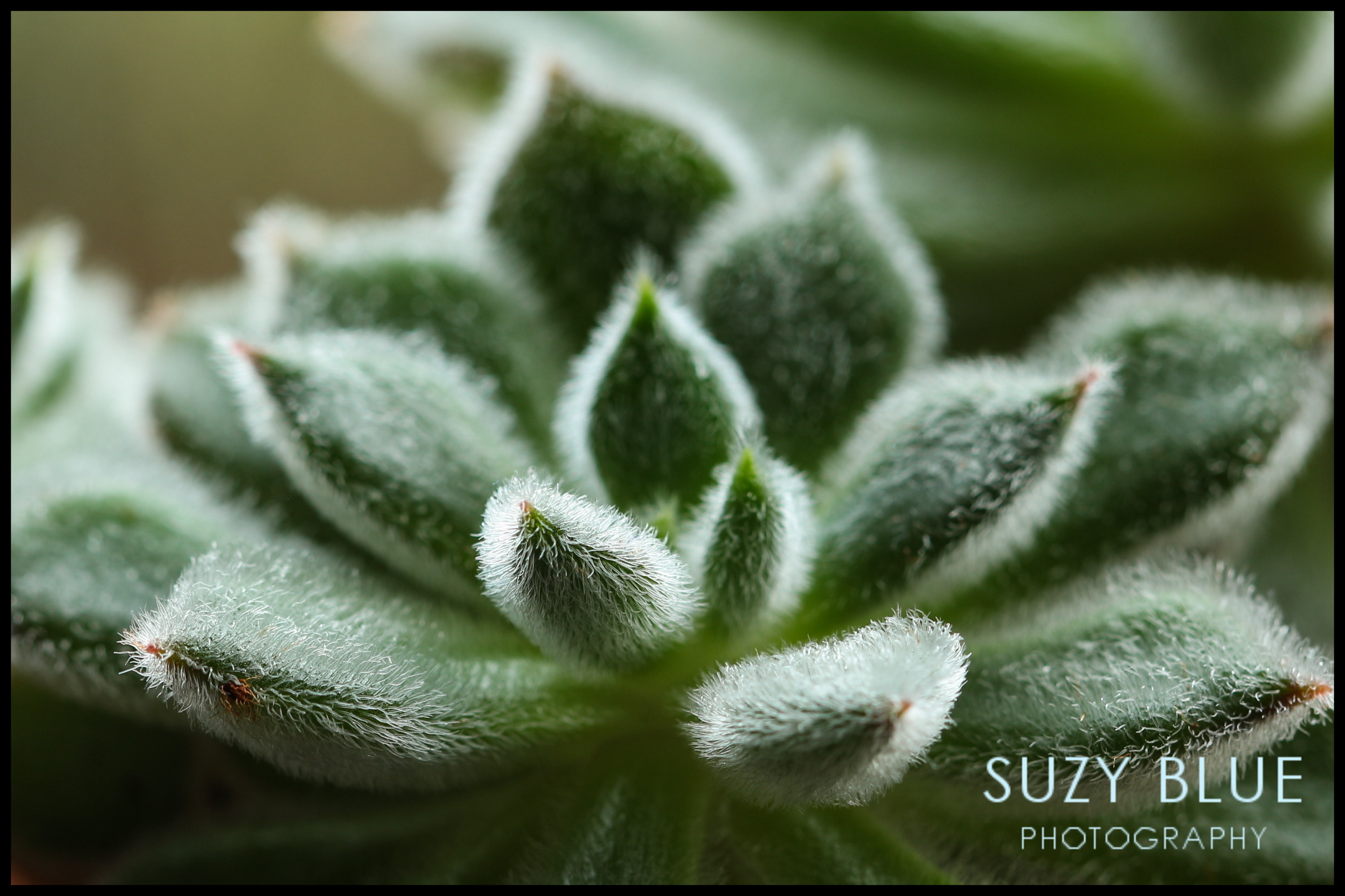 In this photo of one of our succulents (I’ve posted this image before), you can see the detail of the fuzzy leaf just off centre at the front of the plant, but the one to the right isn’t quite focused, and the rest of the plant is quite blurred.