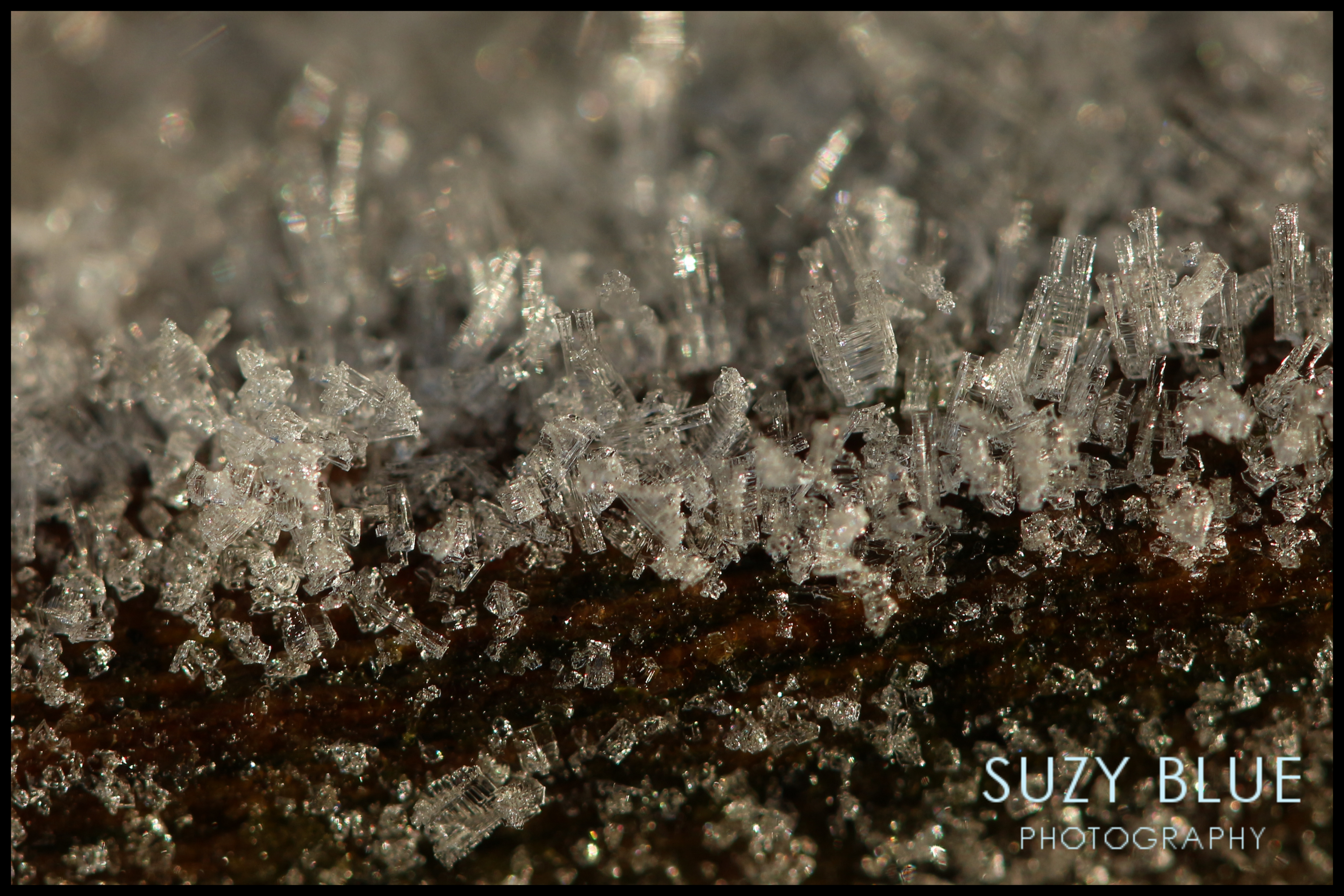 I took this picture of some frost on my garden chair in January. You can see that there is a narrow line of focus, and the frost at the back of the picture is completely blurred out. The frost at the front is also blurry. There just that narrow line across the photo where the crystals of ice are focused.
