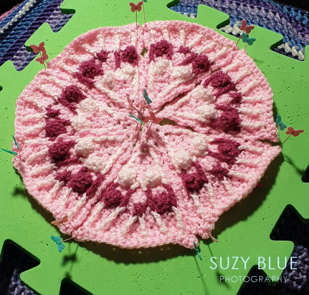For some reason I enjoyed the one on the left (Candyfloss) more than the one on the right (Pale Rose) even though they’re exactly the same pattern! Perhaps I just enjoy the colours more. I’ve now got 7 of the Candyfloss ones done, and still just the one Pale Rose triangle.