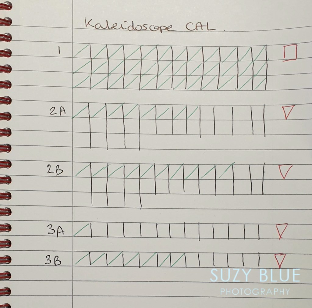Inspired by my daughter creating a bullet journal, I decided it would be nice to have a visual way to record my progress in the CAL. So I made a little grid for each part and I’m crossing squares off when I’ve made another part: