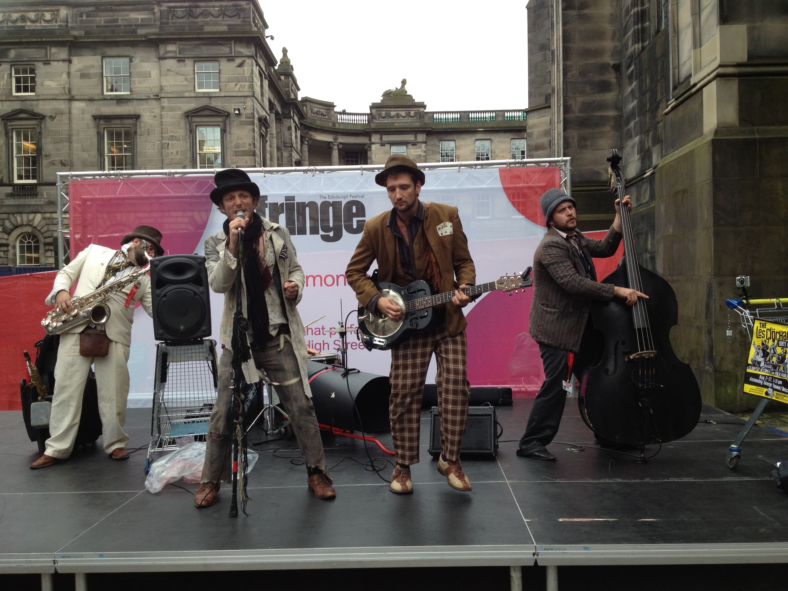 Since I had already delved into photos from way back, this one was easier than I first imagined. This one is again from the Edinburgh Fringe Festival which I visited back in 2012. We have a variety of instruments here: saxophone, guitar and double bass. If I remember rightly they were very good. I guess this gets me a bonus as it contains street performers! 🙂