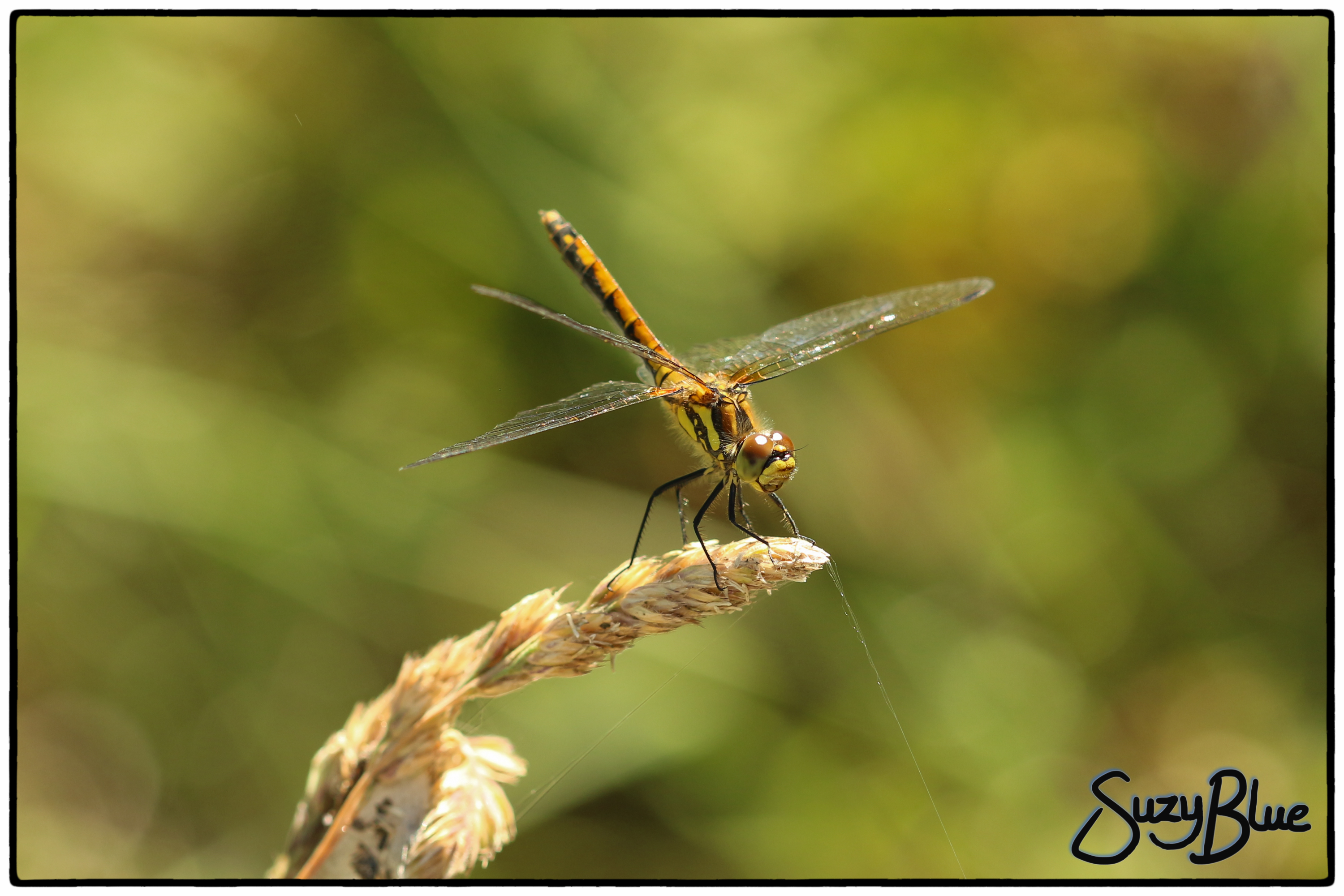 I’ve gone for something hot. This picture is of a female Black Darter dragonfly obelisking at Cors Caron. This is what dragonflies do when it’s really hot – they point their tail to the sun and lift it high. This reduces the amount of their surface area the sun is hitting so they can cool down. If you know about this behaviour, this image clearly tells you it was hot that day!