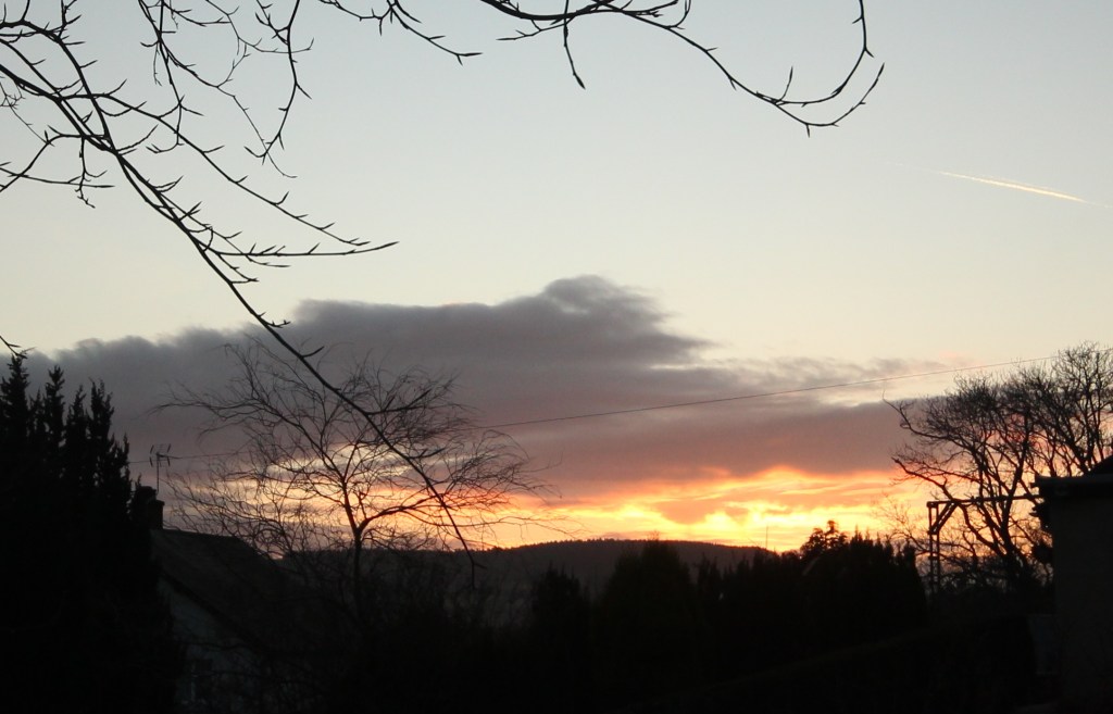 I’m reaching a bit here, but see that line on the right of this sunset photo (double points!) – that’s a trail from a plane passing over, far far away!