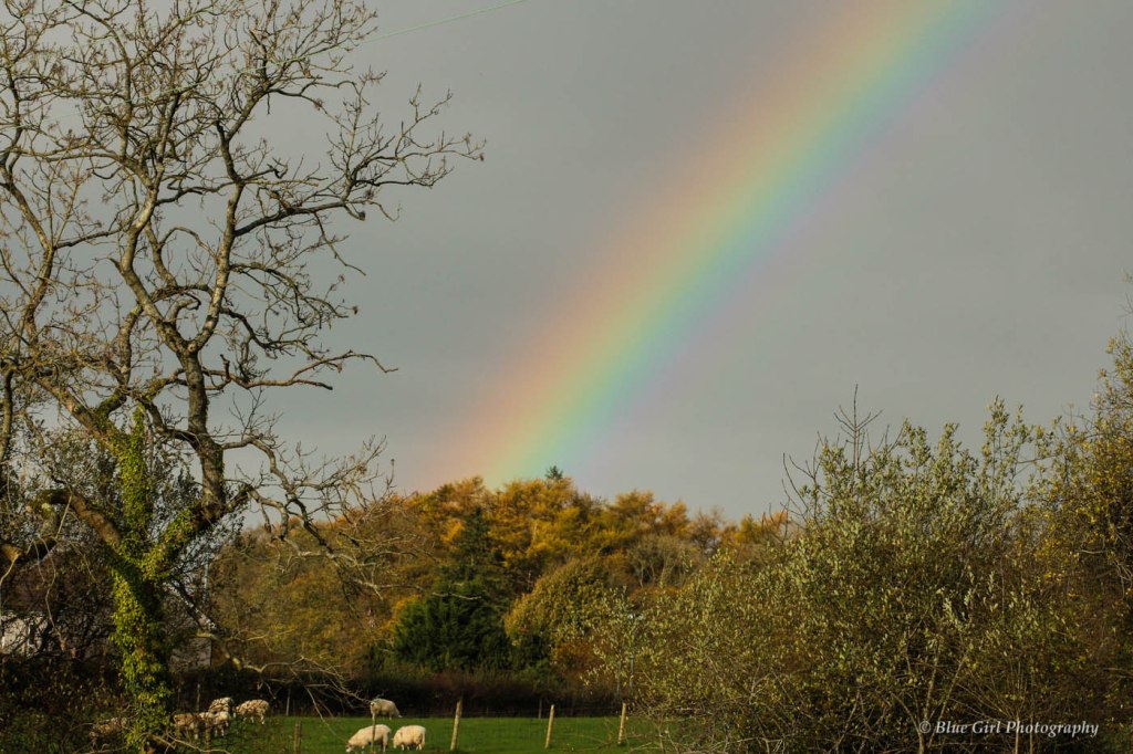 I found this photo I took back in 2014 of a lovely rainbow over a field of sheep in my village. It makes the photo much more interesting, having such lovely colours in the sky.