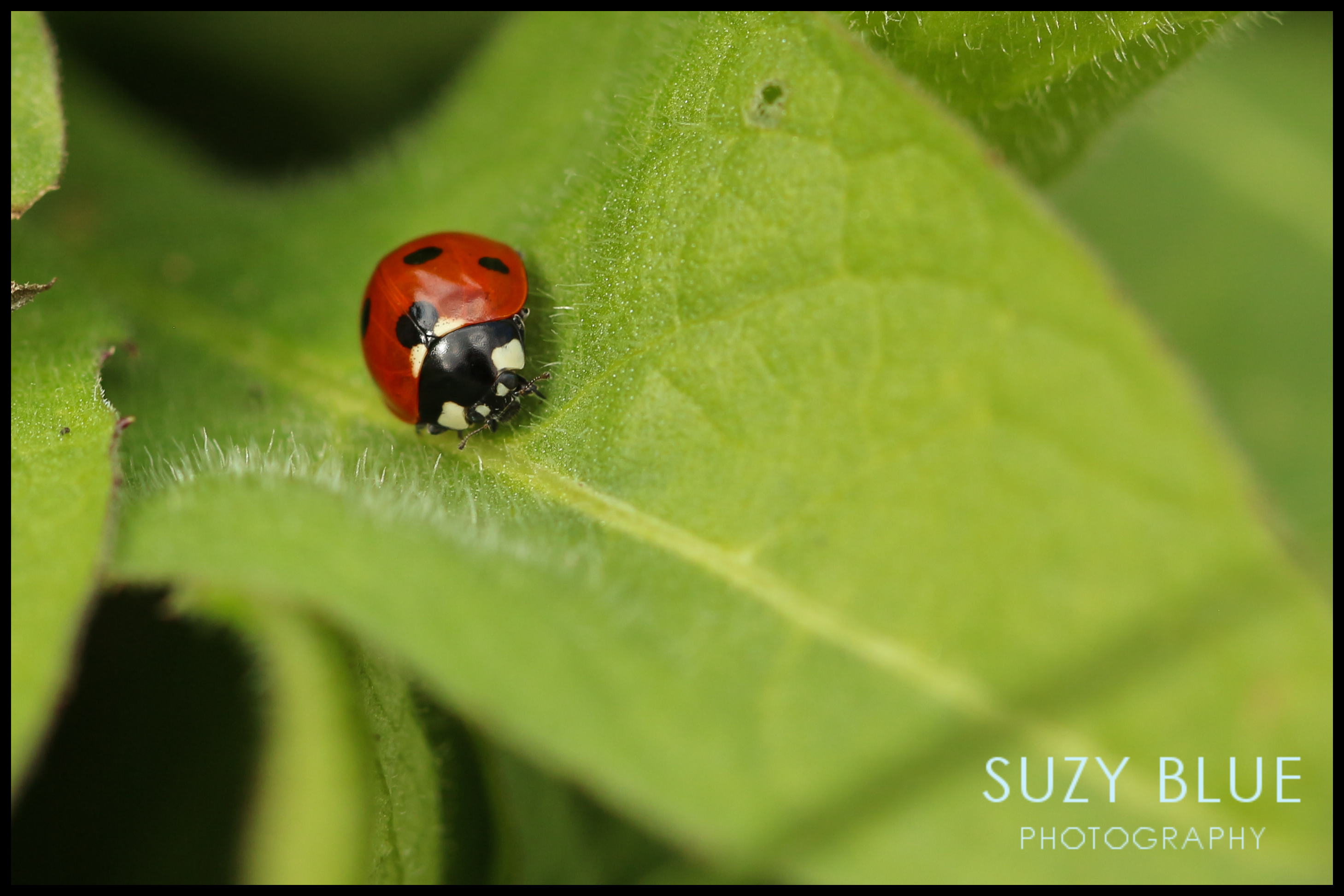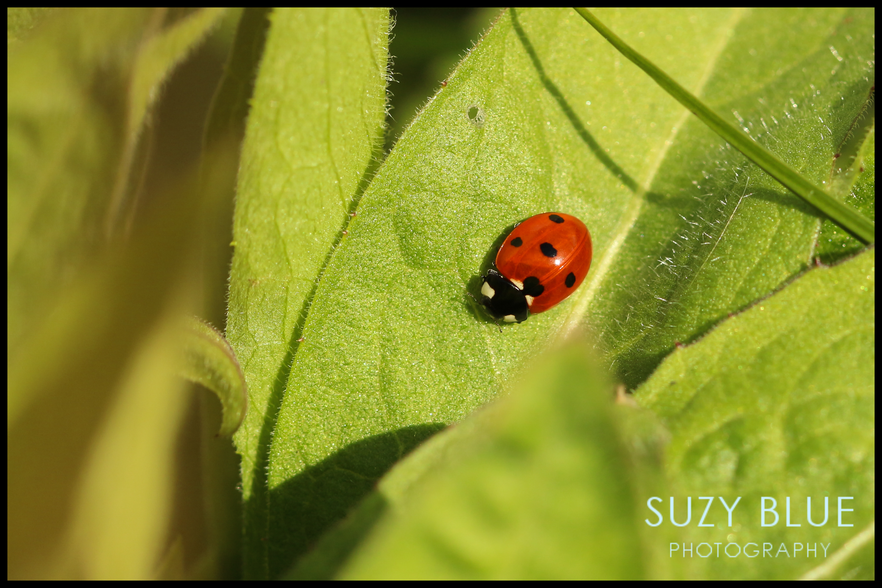 While looking around to see what was growing and who was visiting my plants, I spotted a Ladybird. The contrast of the red against the fresh green of the leaves is lovely. There is a simplicity to the photographs, as well as in the observation here. Just the red (and black) and the green, nothing else.