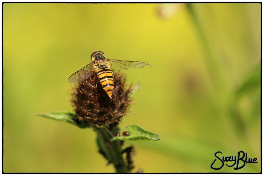 It has black and yellow stripes. It looks kind of scary. Do you react in the same way? Many people do. We make assumptions. We see black and yellow and assume this is a scary insect that will sting us given half a chance. But this is a hoverfly. It doesn’t have a sting. It can’t harm you in any way.
