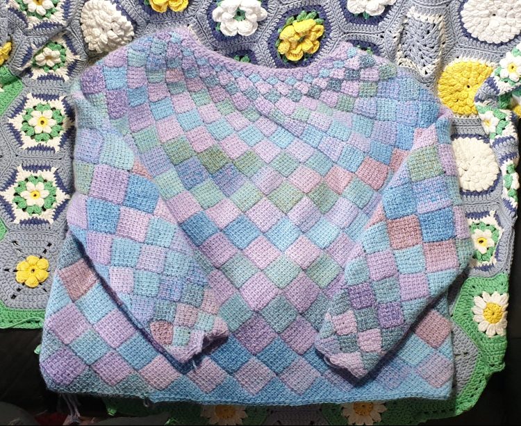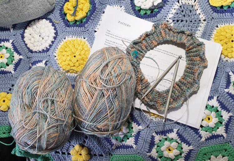 Finished rainbow socksFinished Diamonds Not Pearls jumper … but with a lot of ends to sew in still! Will do shots of me actually wearing it when the ends are done.The beginnings of a new project which involves a double ended circular crochet hook, and 2 balls of yarn at once! It’s Tunisian crochet in the round, very new to me.
