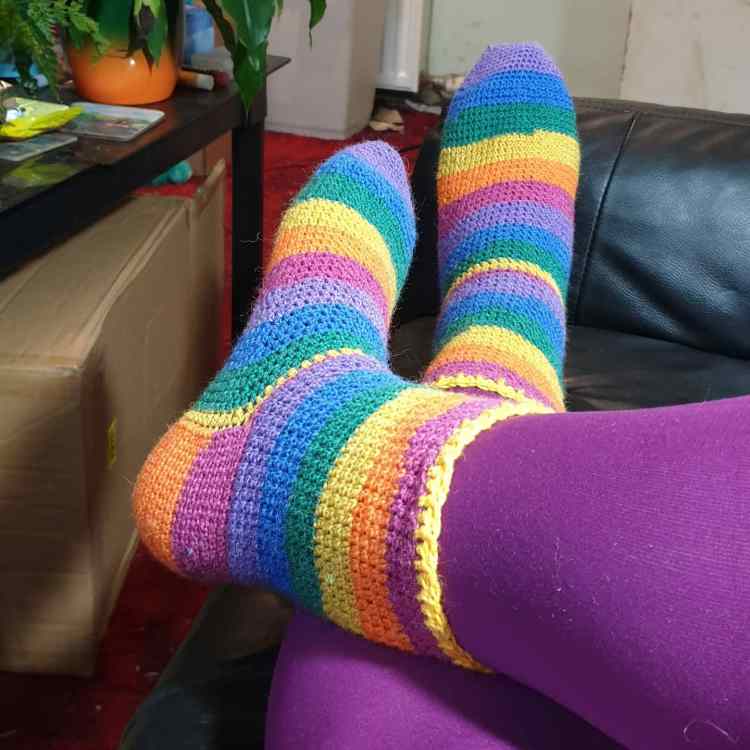 The pattern for the socks is in Inside Crochet magazine.