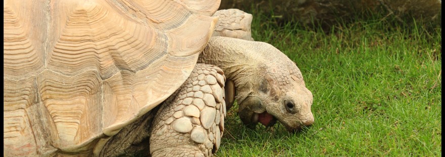There were some very large Sulcata Tortoises at Folly Farm, and one of them seemed to be particularly hungry. I was fascinated by the way he opened his mouth so wide to get as much grass as possible! What are you looking at? Open wide! Nom nom nom Do I need to wipe my mouth?